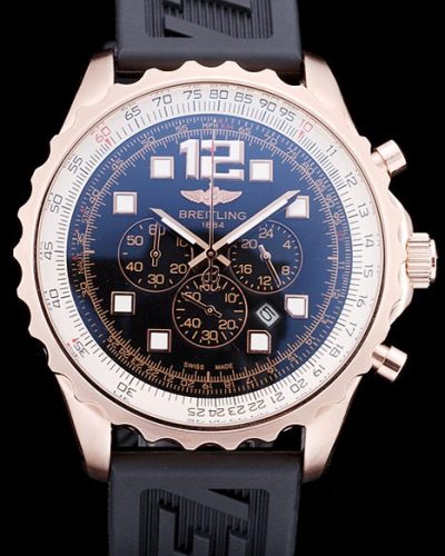 Bracelet: Black rubber strap with Breitling Replica logo engraved stainless steel hook-buckle clasp