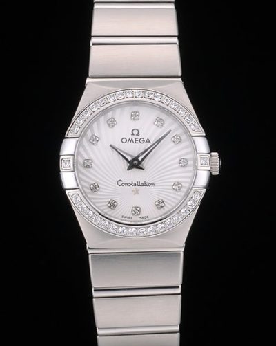 Swiss Lady Omega Constellation Crystal Encrusted Bezel Silver Radial Dial 80291