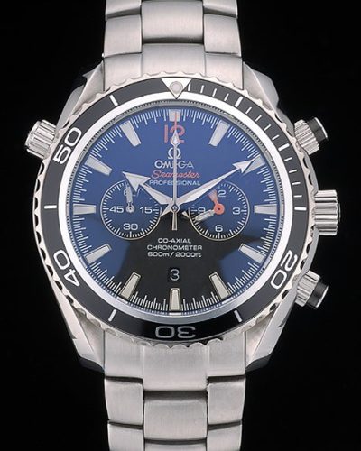• Omega Seamaster Planet Ocean Black Tachymeter Black Dial Stainless Steel Strap 80240