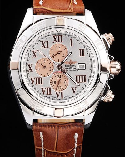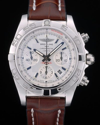 • Swiss Breitling Certifie Stainless Steel Bezel Brown Croco Leather Bracelet White Dial 80285