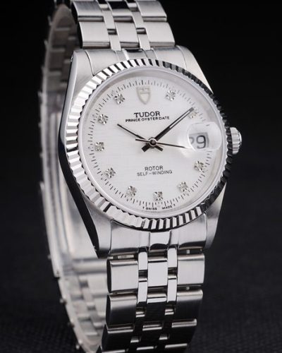 • Tudor Swiss Classic Prince Date Stainless Steel Case Silver Ribbed Bezel White Dial