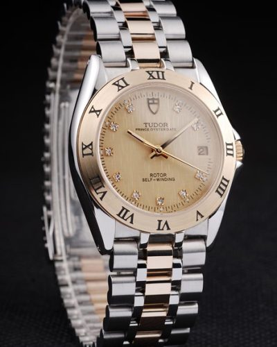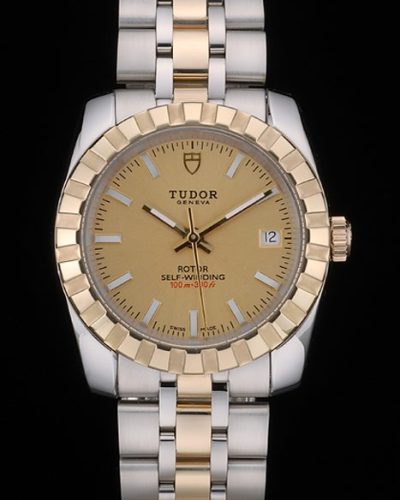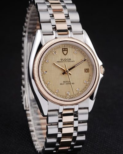 • Tudor Swiss Classic Prince Date Stainless Steel Case Rose Gold Bezel Gold Dial