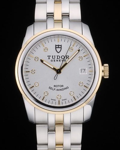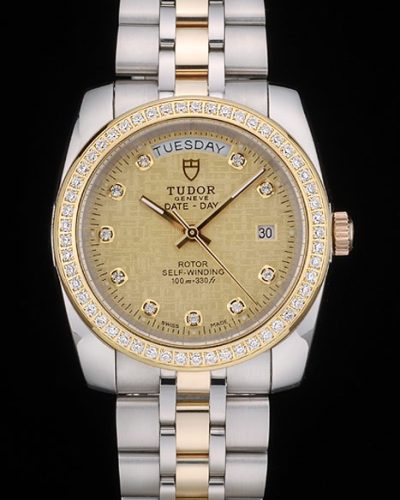 • Swiss Tudor Classic Rose Crystal Encrusted Bezel Crystal Encrusted Golden Dial 80304