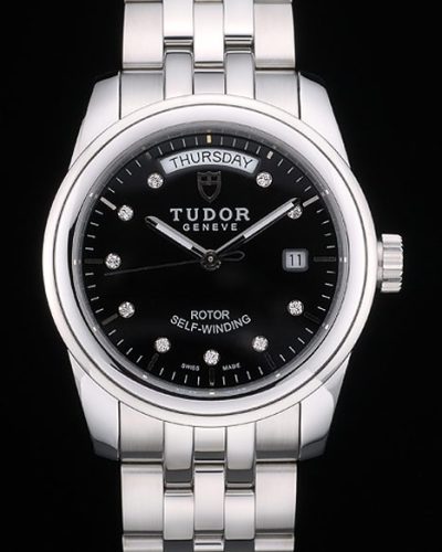 • Swiss Tudor Classic Stainless Steel Bracelet Silver Black Dial 80300