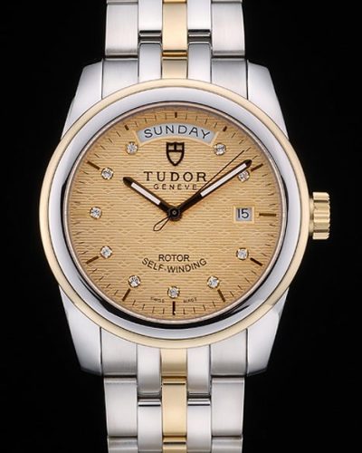 • Swiss Tudor Classic Rose Gold and Stainless Steel Polished Bezel Golden Dial 80305