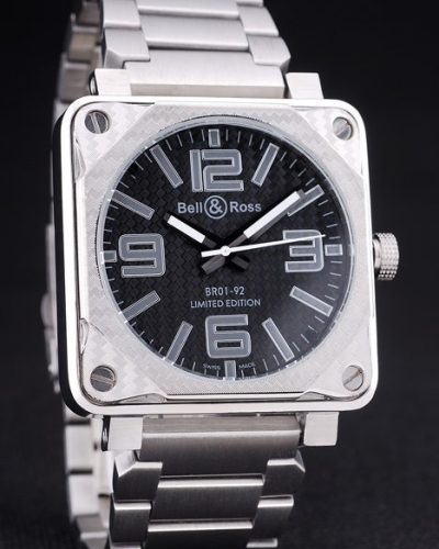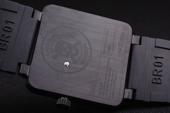 Back: Ion-plated stainless steel screwed down back with Bell & Ross Replica inscriptions