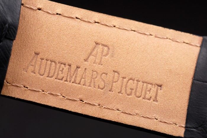 Bracelet: Heat embossed Audemars Piguet Replica black crocodile leather strap with Audemars Piguet Replica engraved stainless steel fold-in clasp