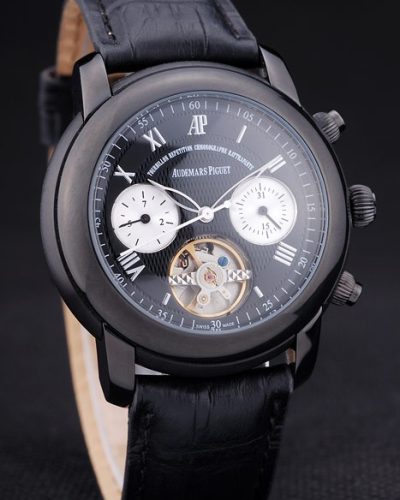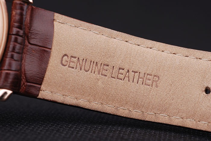 Bracelet: Brown crocodile leather strap with heat embossed Audemars Piguet Replica name and logo and an Audemars Piguet Replica inscribed 18k rose-gold plated flip-over hook clasp