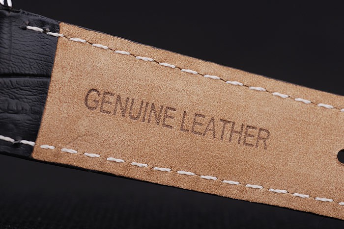 Bracelet: Black crocodile leather strap with white stitching and heat embossed Audemars Piguet Replica name and logo and an Audemars Piguet Replica inscribed stainless steel flip-over hook clasp