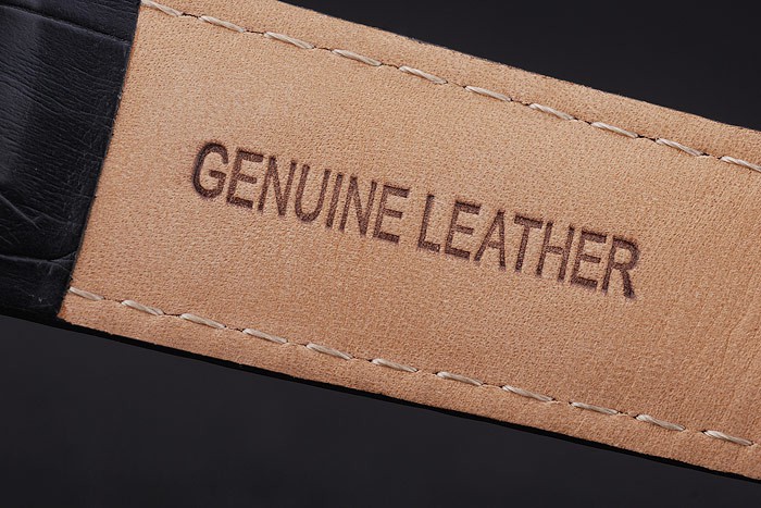Bracelet: Black crocodile leather strap with white thread stitching and heat embossed Audemars Piguet Replica name and logo and an Audemars Piguet Replica inscribed stainless steel flip-over hook clasp