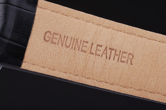 Bracelet: Black crocodile leather strap with white thread stitching and heat embossed Audemars Piguet Replica name and logo and an Audemars Piguet Replica inscribed ion-plated flip-over hook clasp