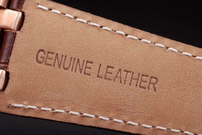 Bracelet: Heat embossed Audemars Piguet Replica brown crocodile leather strap with white stitching and Audemars Piguet Replica engraved rose-gold plated fold-in clasp