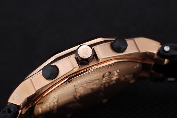 Back: Screwed down rose-gold plated stainless steel back with Royal Oak Offshore engraving Gender: DonneMovement: Quarzo (Batteria) Quality: Giapponese Miyota Color: Nero Case: 18k rose gold plated stainless steel case Bracelet: Black crocodile leather strap with white thread stitching and heat embossed Audemars Piguet Replica name and logo and an Audemars Piguet Replica inscribed rose-gold plated flip-over hook clasp Bracelet Length: 247 x 22 mm Bezel: 18k rose-gold plated hexagonal screwed down bezel Band Type: Pelle di coccodrillo Diameter: 38 x 29 mm Watch Clasp: Flip Clasp Glass: Sapphire Crystal Crown: Rose-gold plated Audemars Piguet Replica logo engraved ion-plated cutwork crown with two small ion-plated crowns on either side of it Case Thickness: 10 mm