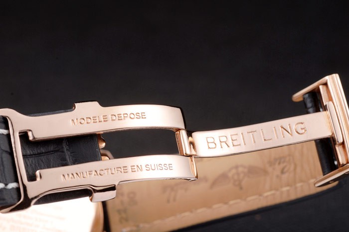 Back: 18k yellow gold push-in case back with Breitling Replica engravings Gender: UominiMovement: Cinetico (Automatico) Quality: Giapponese Miyota Color: Nero Case: 18k yellow gold plated stainless steel case Bracelet: Black crocodile leather strap with patent white stitching and heat embossed Breitling Replica engravings and engraved 18k yellow gold plated fold in clasp with Breitling Replica logo on top Bracelet Length: 255 x 21 mm Bezel: 18k yellow gold plated unidirectional cutwork bezel with tachymeter Band Type: Pelle Diameter: 49 x 44 mm Watch Clasp: Flip Clasp Glass: Sapphire Crystal Crown: 18k yellow gold plated stainless steel crown with Breitling Replica logo and two smaller crowns on either side of it Case Thickness: 15 mm