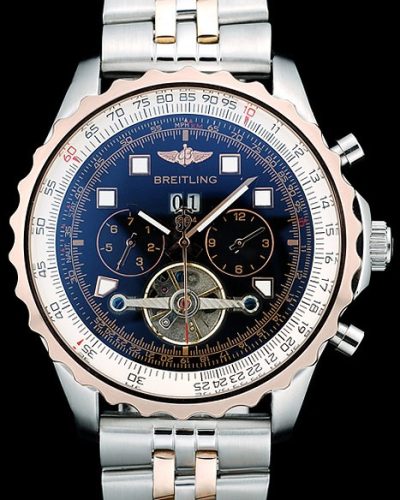 Crown: Polished stainless steel cutwork crown with Breitling Replica logo and two small round push-button crowns on either side of it
