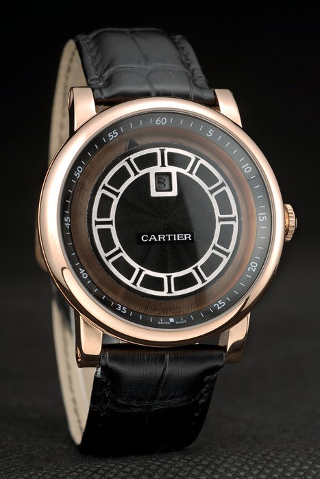 Back: Polished stainless steel screwed down back with transparent center and Cartier Replica engravings Gender: UominiMovement: Cinetico (Automatico) Quality: Giapponese Miyota Color: Nero Case: 18k rose-gold plated case Bracelet: Cartier Replica heat embossed black crocodile leather strap with polished stainless steel buckle clasp Bracelet Length: 200 x 23 mm Bezel: 18k rose-gold plated bezel Band Type: Pelle Diameter: 49 x 43 mm Glass: Sapphire Crystal Crown: Sapphire crystal stud rose-gold plated cutwork crown Case Thickness: 14 mm