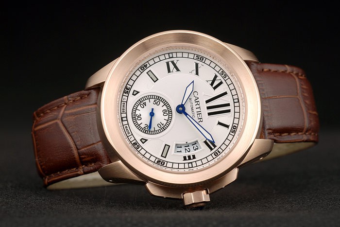 Back: Brushed stainless steel screwed down back with transparent center and Cartier Replica inscriptions Gender: UominiMovement: Cinetico (Automatico) Quality: Giapponese Miyota Case: 18k rose-gold plated case Bracelet: Cartier Replica heat embossed brown crocodile leather strap with rose-gold plated buckle clasp Bracelet Length: 200 x 23 mm Bezel: 18k rose-gold plated bezel Band Type: Pelle Diameter: 49 x 43 mm Glass: Sapphire Crystal Crown: Sapphire crystal stud octagonal rose-gold plated crown placed on a long oblong pedestal Case Thickness: 13 mm