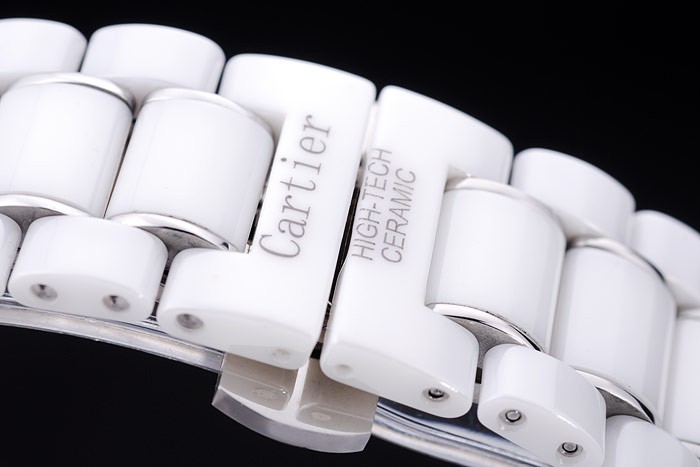 Bracelet: White ceramic and stainless steel link bracelet with Cartier Replica High-Tech Ceramic engraved hidden push-release clasp
