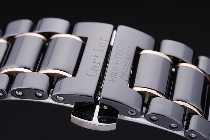 Bracelet: Black ceramic and rose-gold link bracelet with Cartier Replica High-Tech Ceramic engraved hidden push-release clasp