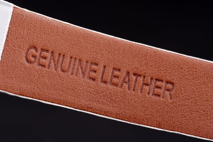 Bracelet: Heat embossed Cartier Replica black textured leather strap with Cartier Replica inscribed polished stainless steel fold-in flip clasp