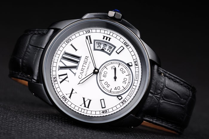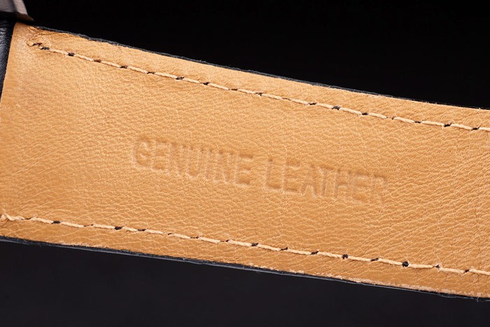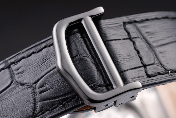 Bracelet: Heat embossed Cartier Replica stamped black crocodile leather strap with ion-plated hidden clasp