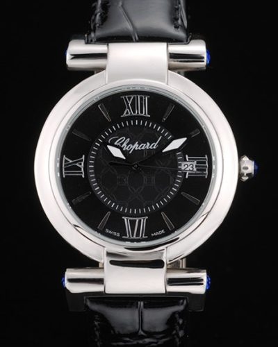 With floating faux diamonds, a leather strap, and a modern yet classic face, this Chopard Replica replica watch is too fabulous for words.