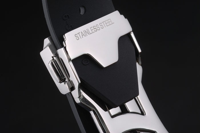 Back: Brushed stainless steel screwed down back with Hublot Replica Big Bang engravings Gender: UominiMovement: Quarzo (Batteria) Quality: Giapponese Miyota Case: Brushed stainless steel case Bracelet: Hublot Replica Geneve heat embossed ribbed black rubber strap with Hublot Replica Geneve engraved brushed stainless steel push release hook clasp Bracelet Length: 185 x 20 mm Bezel: Brushed stainless steel screwed down bezel Band Type: Gomma Diameter: 54 x 42 mm Glass: Sapphire Crystal Crown: Polished stainless steel cutwork crown with Hublot Replica logo and an oblong push button crown on either side of it Case Thickness: 12 mm