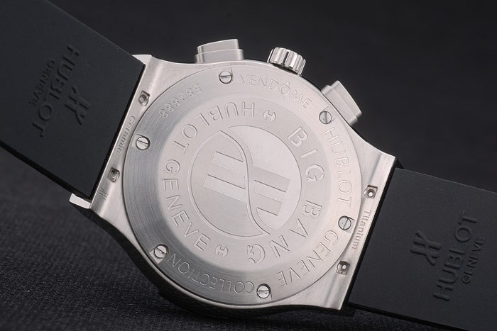 Back: Brushed stainless steel screwed down back with Hublot Replica Big Bang engravings Gender: UominiMovement: Quarzo (Batteria) Quality: Giapponese Miyota Case: Brushed stainless steel case Bracelet: Hublot Replica Geneve heat embossed ribbed black rubber strap with Hublot Replica Geneve engraved brushed stainless steel push release hook clasp Bracelet Length: 185 x 20 mm Bezel: Brushed stainless steel screwed down bezel Band Type: Gomma Diameter: 54 x 42 mm Glass: Sapphire Crystal Crown: Polished stainless steel cutwork crown with Hublot Replica logo and an oblong push button crown on either side of it Case Thickness: 12 mm