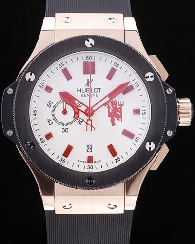 Back: Hublot Replica Big Bang engraved ion-plated screwed down bezel with Manchester United logo