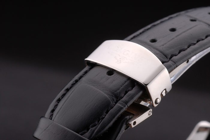 Back: Brushed stainless steel snap in back with Longines Replica engravings Gender: UominiMovement: Quarzo (Batteria) Quality: Giapponese Miyota Case: Polished stainless steel case Bracelet: Longines Replica heat embossed black crocodile leather strap with Longines Replica and logo inscribed polished stainless steel hook clasp Bracelet Length: 195 x 20 mm Bezel: Ion-plated bezel with Arabic numeral 24-hour marker Diameter: 48 x 39 mm Glass: Sapphire Crystal Crown: Polished stainless steel cutwork crown with Longines Replica logo and wall protection on two sides Case Thickness: 12 mm