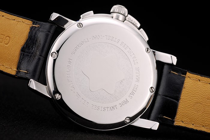 Back: Polished stainless steel screwed down back with MontBlanc Replica inscriptions and logo engraving