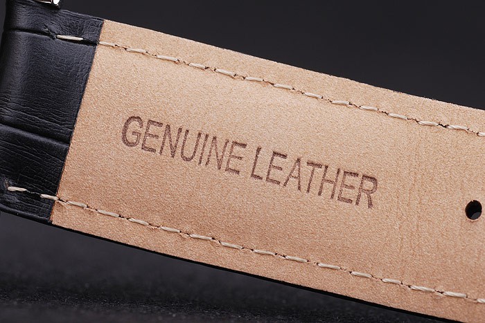 Bracelet: Heat embossed MontBlanc Replica black crocodile leather strap with MontBlanc Replica name and logo engraved polished stainless steel flip-over hook clasp