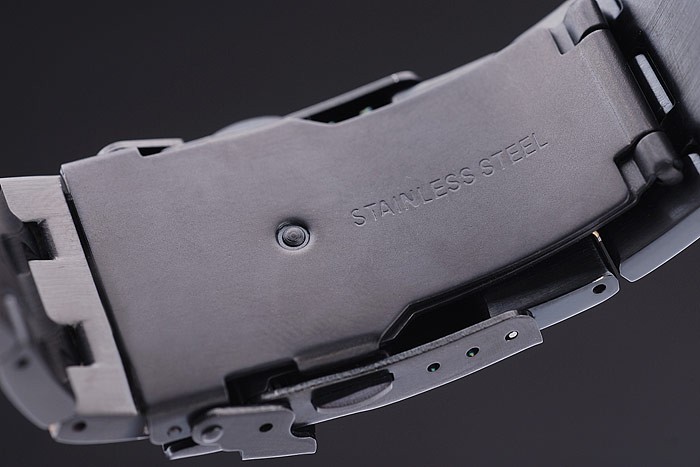 Back: Polished stainless steel snap-in back with MontBlanc Replica logo and engravings Gender: UominiMovement: Quarzo (Batteria) Quality: Giapponese Miyota Color: Nero Case: Ion-plated Stainless Steel Case Bracelet: Ion-plated link bracelet with MontBlanc Replica inscribed fold-in push-button clasp Bracelet Length: 190 x 24 mm Bezel: Ion-plated stainless steel bezel Diameter: 55 x 42 mm Watch Clasp: Butterfly Clasp Glass: Sapphire Crystal Crown: Ion-plated crown enclosed within a protective case Case Thickness: 17 mm