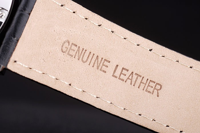 Bracelet: Heat embossed Nomos Replica Glashutte black crocodile leather strap with NOMOS engraved ion-plated hook-buckle clasp