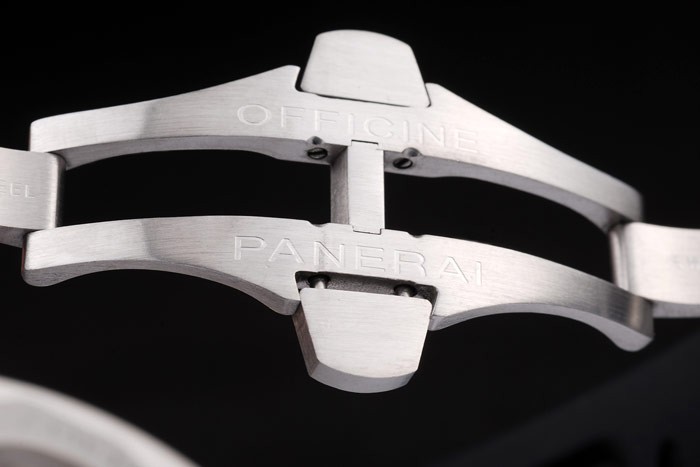 Bracelet: Panerai Replica Italy embossed black rubber strap with brushed stainless steel Officine Panerai Replica engraved fold-in hook clasp