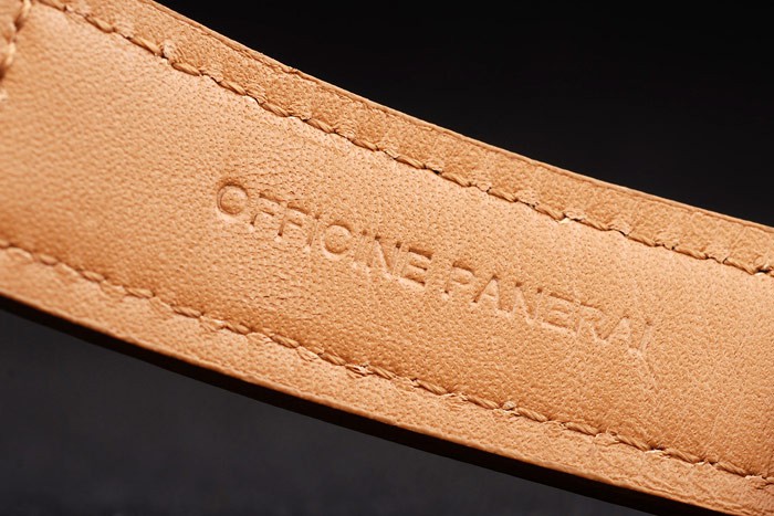 Back: Screwed down stainless steel back with Officine Panerai Replica Firenze engraving Gender: UominiMovement: Cinetico (Automatico) con carica manuale quotidiana Quality: Giapponese Miyota Color: Marrone Case: Brushed stainless steel case Bracelet: Light brown leather strap with heat embossed Officine Panerai Replica Italy stamp and brushed stainless steel hook-buckle clasp with Panerai Replica engraving Bracelet Length: 227 x 24 mm Bezel: Brushed stainless steel bezel with standout minute markers and every quarter marked in red Arabic numerals Band Type: Pelle Diameter: 67 x 54 mm Watch Clasp: Buckle Glass: Sapphire Crystal Crown: Brushed stainless steel cutwork crown enclosed within an arched protection Case Thickness: 17 mm