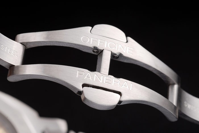 Bracelet: Brushed and polished stainless steel link bracelet with Panerai Replica Officine engraved hidden clasp