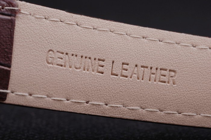 Bracelet: Rich brown leather strap with Patek Philippe Replica stamp and a rose gold hook buckle clasp