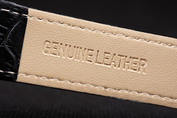 Bracelet: Black crocodile leather strap with heat embossed Patek Philippe Replica stamp and polished stainless steel Patek Philippe Replica logo hook-buckle clasp