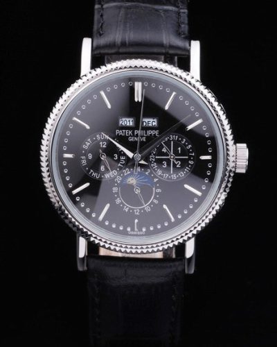 Bracelet: Brown crocodile leather strap with heat embossed Patek Philippe Replica stamp and 18k rose-gold plated Patek Philippe Replica logo hook-buckle clasp