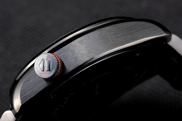 This watch has AR glass. The face color will appear different colors depending on how the light falls on it. Back: Ion-plated screwed down back with Tag Heuer Replica Carrera engravings Gender: UominiMovement: Quarzo (Batteria) Quality: Giapponese Miyota Color: Nero Case: Ion-plated stainless steel case Bracelet: Ion-plated link bracelet with Tag Heuer Replica logo engraved push-release hidden clasp Bracelet Length: 190 x 22 mm Bezel: Ion-plated bezel with tachymeter Diameter: 50 x 43 mm Chronograph: Si Watch Clasp: Butterfly Clasp Glass: Sapphire Crystal Crown: Ion-plated cutwork crown with Tag Heuer Replica logo and red band trim and two long push-button crowns on either side of it plus a logo engraved ion-plated crown with red band trim on the opposite top corner Case Thickness: 15 mm