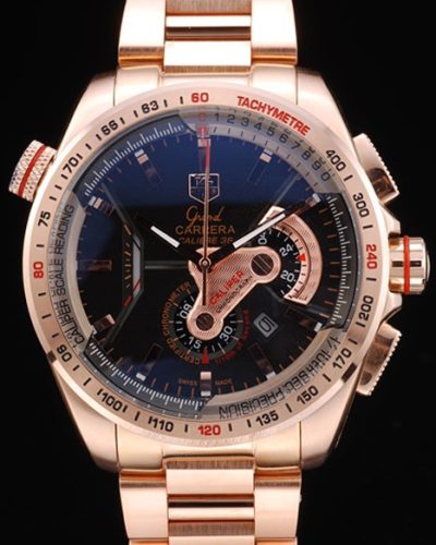 Back: Polished stainless steel screwed down back with Tag Heuer Replica Grand Carrera engravings