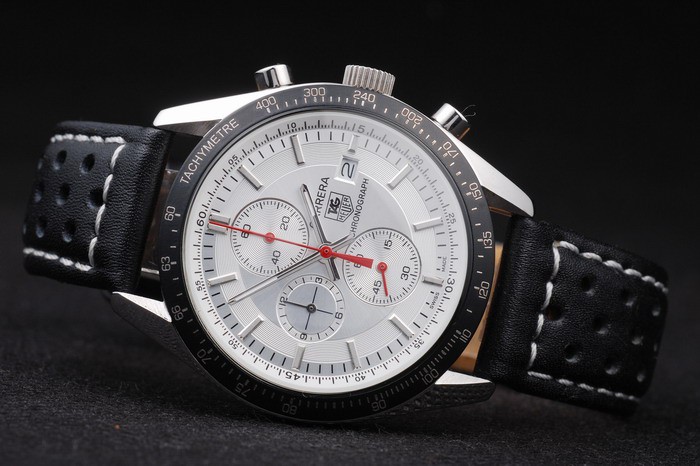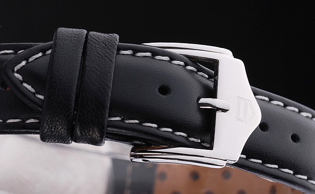 Bracelet: Textured black leather strap with heat embossed Formula 1 stamp and Tag Heuer Replica engraved hook-buckle clasp