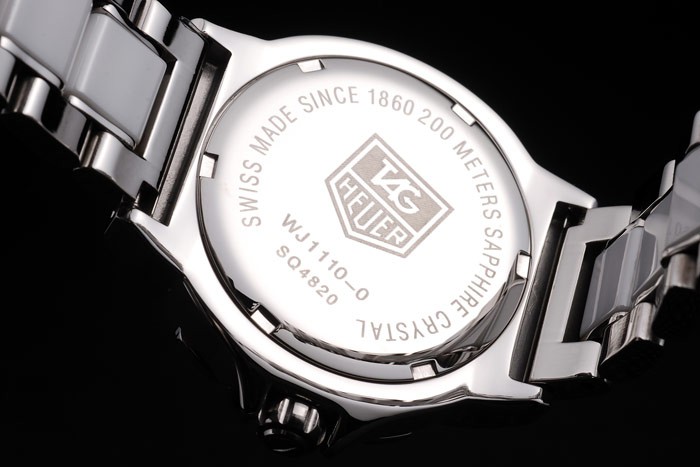 Back: Stainless steel snap-in back with Tag Heuer Replica engravings Gender: UominiMovement: Quarzo (Batteria) Quality: Giapponese Miyota Case: Polished stainless steel case Bracelet: Polished stainless steel and white ceramic link bracelet with push-release hidden clasp Bracelet Length: 176 x 18 mm Bezel: White ceramic bezel with silver Arabic numeral minute markers Band Type: Acciaio inossidabile Diameter: 39 x 36 mm Glass: Sapphire Crystal Crown: Stainless steel cutwork crown with Tag Heuer Replica logo Case Thickness: 11 mm