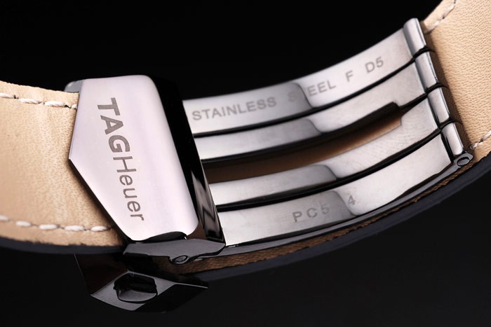 Back: Stainless steel screwed down back with Tag Heuer Replica Monaco engravings Gender: UominiMovement: Quarzo (Batteria) Quality: Giapponese Miyota Color: Nero Case: Ion-plated stainless steel case Bracelet: Black crocodile leather strap with heat embossed Tag Heuer Replica stamp and ion-plated push-release fold-in clasp with Tag Heuer Replica logo on top Bracelet Length: 203 x 22 mm Bezel: Ion-plated bezel with Tag Heuer Replica engraving on bottom corner Band Type: Pelle Diameter: 52 x 43 mm Watch Clasp: Flip Clasp Glass: Sapphire Crystal Crown: Ion-plated cutwork crown with Tag Heuer Replica logo and two rectangular push-button crowns on either side of it Case Thickness: 16 mm