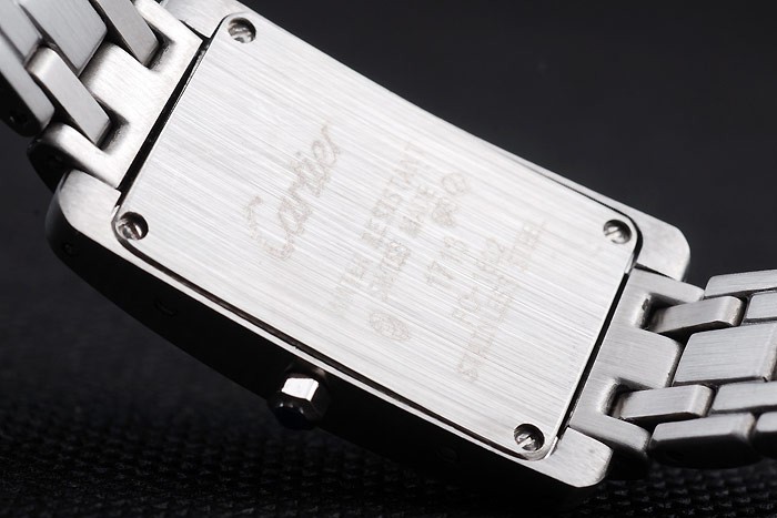 Back: Brushed stainless steel screwed down back with Cartier Replica inscription