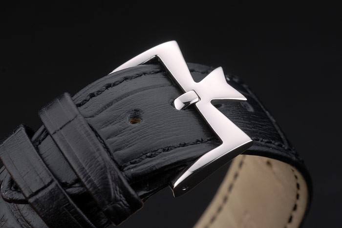 Bracelet: Vacheron Constantin Replica and logo heat embossed black crocodile leather strap with polished stainless steel logo hook-buckle clasp